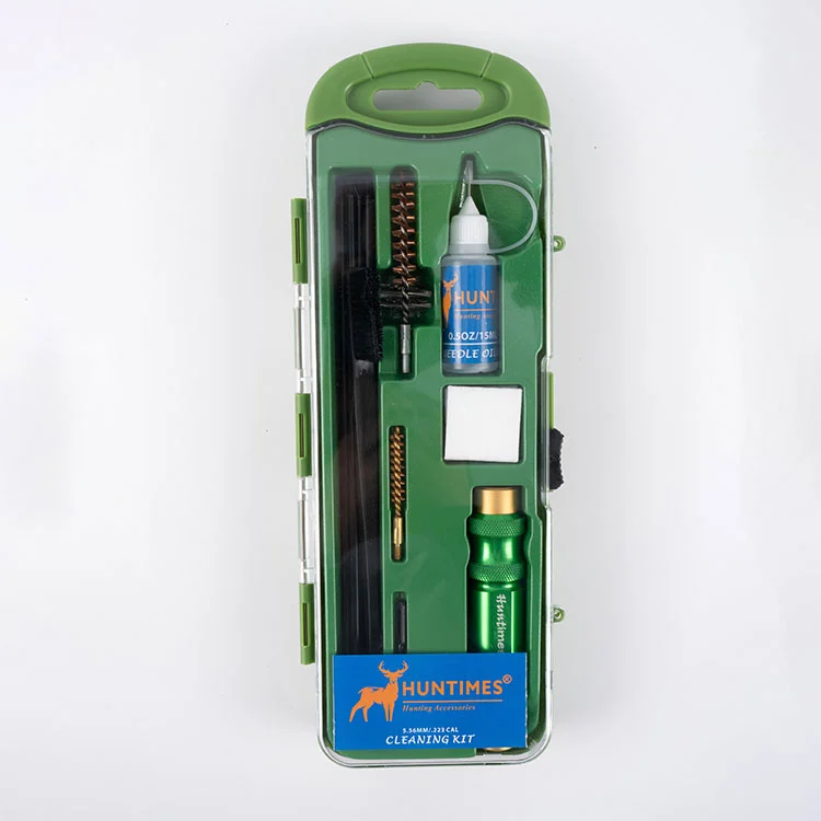 Алуминиумска легура 5. Комплетот за чистење пиштол 56MM 223 Cal содржи серија алатки за чистење 5. 56мм/. Пиштоли со калибар 223, како што се четки за чистење, шипки за чистење, лепенки за чистење итн. Овие алатки можат темелно да ги отстранат остатоците од барут, нечистотијата и маснотиите во внатрешноста на пиштолот за да ја осигураат точноста и доверливоста на пиштолот.