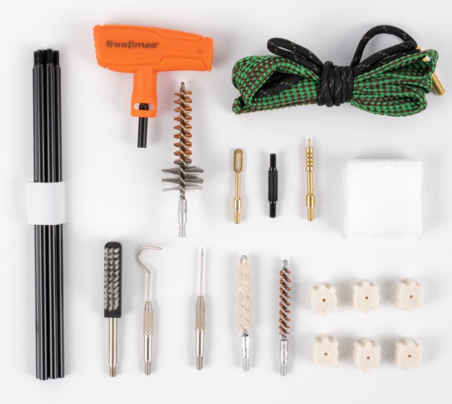 Комплетот за чистење со пушка Huntimes® е комплетен систем за одржување на вашиот пиштол чист и прецизно пукање. Бакарните делови, челичните шипки и четките од фосфорна бронза ги штитат дупките. Комплетот за чистење Huntimes® Shotgun е комплетен систем за чистење кој лесно патува со вас.